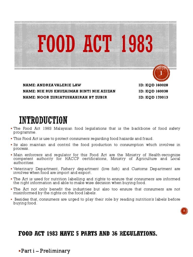 Food Act 1983 Malaysia / Hence, there is increasing demand for safe food in malaysia that has led to the strengthening of food safety these are food safety standards practiced in malaysia: