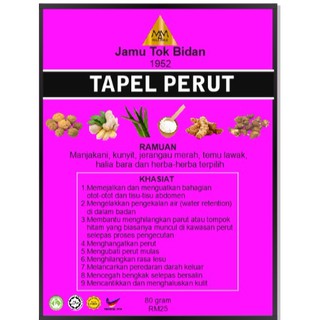 Minyak urut, batu tungku, pek mandian herba, bahan lulur, bahan tangas, pilis dan losyen sapu perut/tapel.
